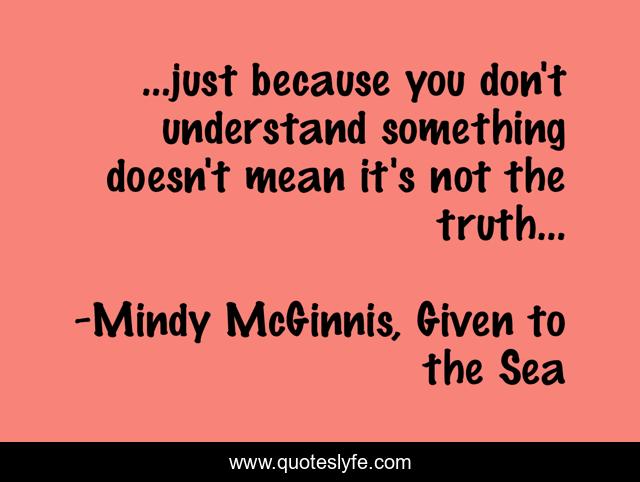 This page presents the quote "...just because you don't understand something doesn't mean it's not the truth...". Author of this quote is Mindy McGinnis, Given to the Sea. This quote is about truth, wisdom,.