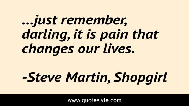 This page presents the quote "...just remember, darling, it is pain that changes our lives.". Author of this quote is Steve Martin, Shopgirl. This quote is about enthusiasm, thoughtful, inspirational, insightful,.