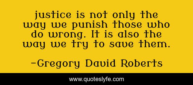 This page presents the quote "justice is not only the way we punish those who do wrong. It is also the way we try to save them.". Author of this quote is Gregory David Roberts. This quote is about justice, successful-mind, inspirational, enthusiasm,.