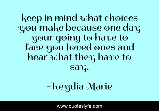 This page presents the quote "keep in mind what choices you make because one day your going to have to face you loved ones and hear what they have to say.". Author of this quote is Keydia Marie. .