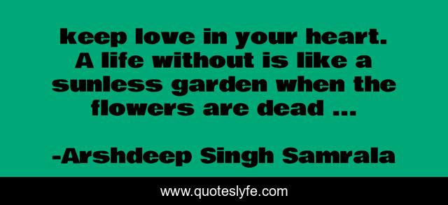 This page presents the quote "keep love in your heart. A life without is like a sunless garden when the flowers are dead ...". Author of this quote is Arshdeep Singh Samrala. This quote is about heart, arshdeep-singh-samrala, garden, pure-heart, love, flower-sunless, affection,.