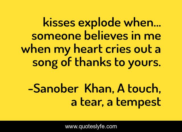 "Sanober Khan, A touch, a tear, a tempest Quotes." Quoteslyfe.com, 2025. Sat. 06 Dec. 2025. <https://www.quoteslyfe.com/quote/kisses-explode-when-someone-believes-in-me-81585>.