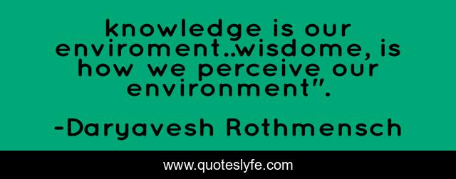 "Daryavesh Rothmensch Quotes." Quoteslyfe.com, 2025. Sat. 06 Dec. 2025. <https://www.quoteslyfe.com/quote/knowledge-is-our-enviroment-wisdome-is-how-13608>.