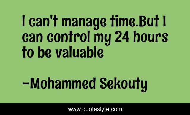 This page presents the quote "l can't manage time.But I can control my 24 hours to be valuable". Author of this quote is Mohammed Sekouty. This quote is about time-management, time,.
