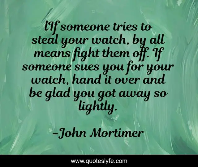 This page presents the quote "lIf someone tries to steal your watch, by all means fight them off. If someone sues you for your watch, hand it over and be glad you got away so lightly.". Author of this quote is John Mortimer. This quote is about litigation, law,.