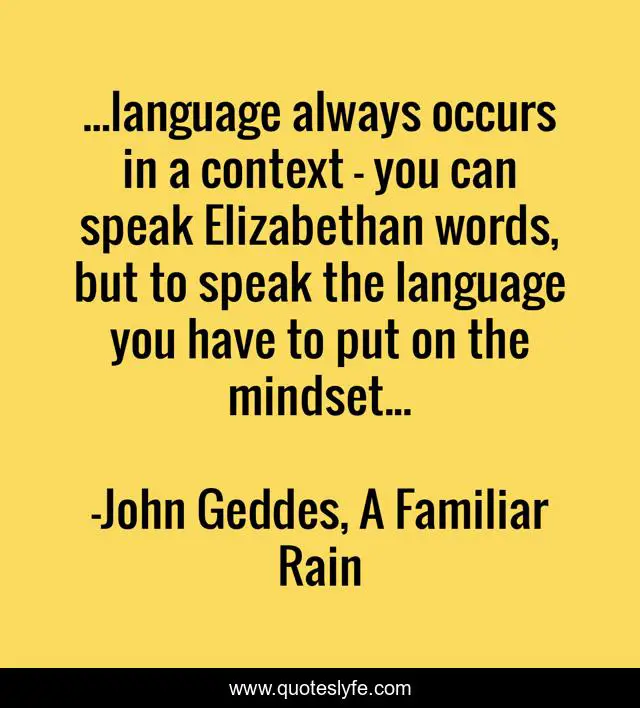 "John Geddes, A Familiar Rain Quotes." Quoteslyfe.com, 2025. Sat. 06 Dec. 2025. <https://www.quoteslyfe.com/quote/language-always-occurs-in-a-context-you-159402>.