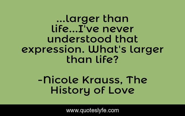 This page presents the quote "...larger than life...I've never understood that expression. What's larger than life?". Author of this quote is Nicole Krauss, The History of Love. .