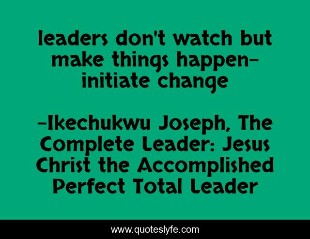 This page presents the quote "leaders don't watch but make things happen-initiate change". Author of this quote is Ikechukwu Joseph, The Complete Leader: Jesus Christ the Accomplished Perfect Total Leader. This quote is about leadership, christian-living,.