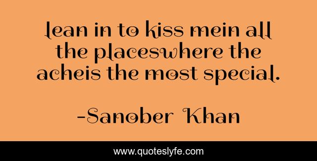 This page presents the quote "lean in to kiss mein all the placeswhere the acheis the most special.". Author of this quote is Sanober Khan. This quote is about body, heart, romantic, desires, profound, soulmates, poetry, deep, soul,.