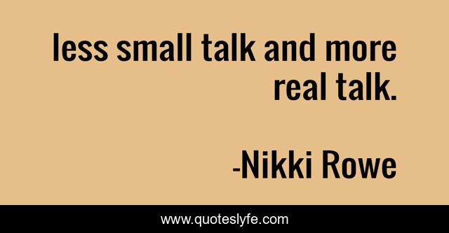 "Nikki Rowe Quotes." Quoteslyfe.com, 2025. Sat. 06 Dec. 2025. <https://www.quoteslyfe.com/quote/less-small-talk-and-more-real-talk-38024>.