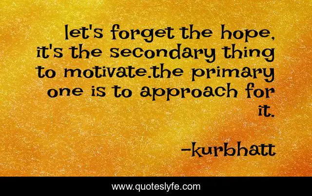 This page presents the quote "let's forget the hope, it's the secondary thing to motivate.the primary one is to approach for it.". Author of this quote is kurbhatt. This quote is about try, life, motivation, hope, self-esteem,.