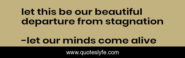 This page presents the quote "let this be our beautiful departure from stagnation". Author of this quote is let our minds come alive. .