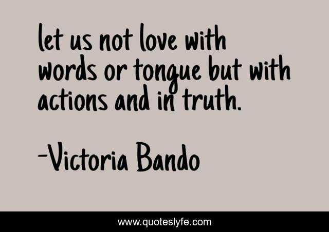 This page presents the quote "let us not love with words or tongue but with actions and in truth.". Author of this quote is Victoria Bando. This quote is about kindness, love, affection,.