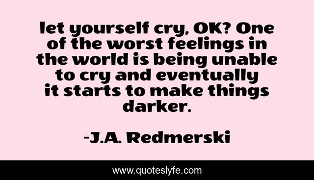 This page presents the quote "let yourself cry, OK? One of the worst feelings in the world is being unable to cry and eventually it…starts to make things darker.". Author of this quote is J.A. Redmerski. This quote is about live, cry,.