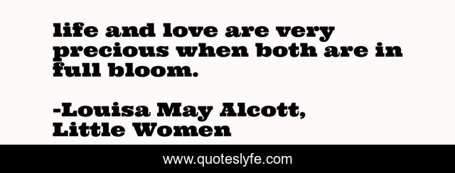This page presents the quote "life and love are very precious when both are in full bloom.". Author of this quote is Louisa May Alcott, Little Women. This quote is about little-women, life, love, louisa-may-alcott, affection,.