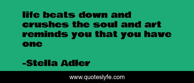 "Stella Adler Quotes." Quoteslyfe.com, 2025. Tue. 09 Dec. 2025. <https://www.quoteslyfe.com/quote/life-beats-down-and-crushes-the-soul-65320>.
