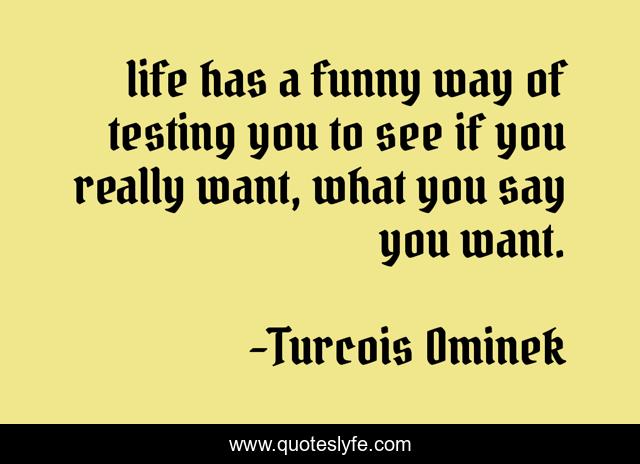 This page presents the quote "life has a funny way of testing you to see if you really want, what you say you want.". Author of this quote is Turcois Ominek. This quote is about funny, life, drive, focus, driven, test, comedy, persistence,.