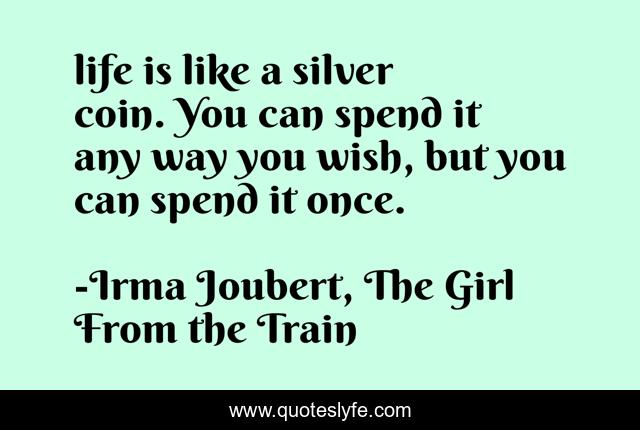 This page presents the quote "life is like a silver coin. You can spend it any way you wish, but you can spend it once.". Author of this quote is Irma Joubert, The Girl From the Train. .