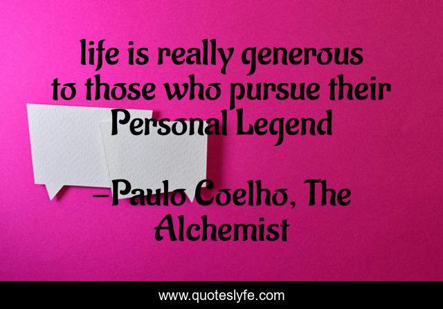 This page presents the quote "life is really generous to those who pursue their Personal Legend". Author of this quote is Paulo Coelho, The Alchemist. .