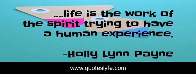 This page presents the quote "....life is the work of the spirit trying to have a human experience.". Author of this quote is Holly Lynn Payne. This quote is about human-experience, rumi, life, love, work, forgiveness, spirit, affection,.