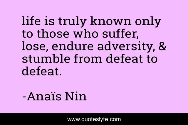 life is truly known only to those who suffer, lose, endure adversity, & stumble from defeat to defeat.