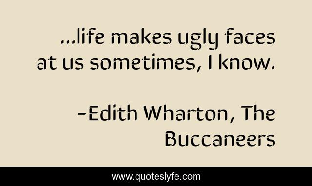 This page presents the quote "...life makes ugly faces at us sometimes, I know.". Author of this quote is Edith Wharton, The Buccaneers. This quote is about edith-wharton, empathy, marion-mainwaring, the-buccaneers,.