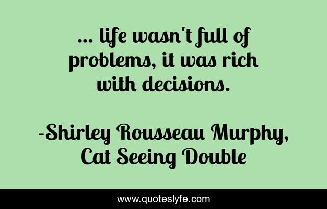 This page presents the quote "... life wasn't full of problems, it was rich with decisions.". Author of this quote is Shirley Rousseau Murphy, Cat Seeing Double. This quote is about life, life-lesson, decisions-in-life, life-philosophy, decisions, problems-in-life,.