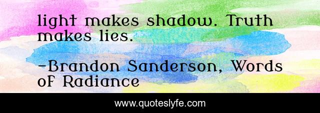 "Brandon Sanderson, Words of Radiance Quotes." Quoteslyfe.com, 2025. Sat. 06 Dec. 2025. <https://www.quoteslyfe.com/quote/light-makes-shadow-Truth-makes-lies-167670>.