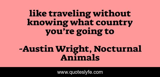 "Austin Wright, Nocturnal Animals Quotes." Quoteslyfe.com, 2025. Mon. 08 Dec. 2025. <https://www.quoteslyfe.com/quote/like-traveling-without-knowing-what-country-you-66762>.