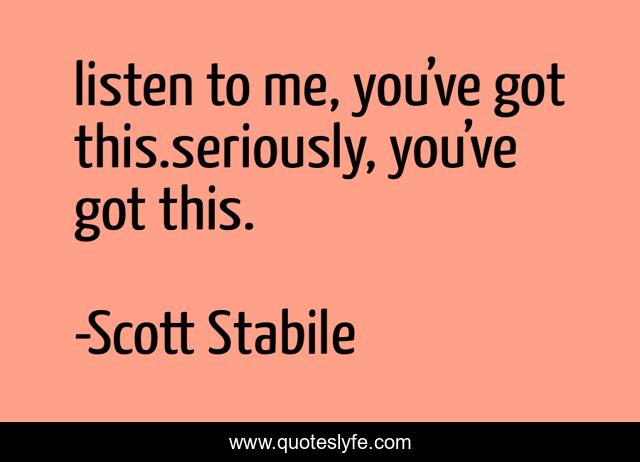 This page presents the quote "listen to me, you’ve got this.seriously, you’ve got this.". Author of this quote is Scott Stabile. This quote is about motivation, you-got-this, encouragement,.