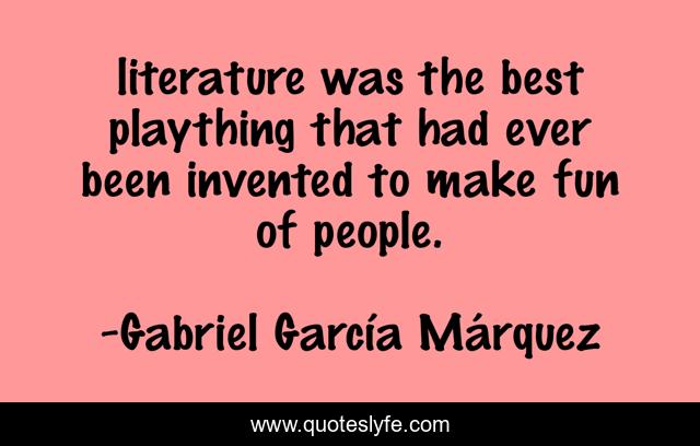 This page presents the quote "literature was the best plaything that had ever been invented to make fun of people.". Author of this quote is Gabriel García Márquez. This quote is about literature, mockery-of-man,.