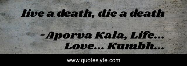 This page presents the quote "live a death, die a death". Author of this quote is Aporva Kala, Life... Love... Kumbh.... This quote is about life, death, wisdom-inspirational,.