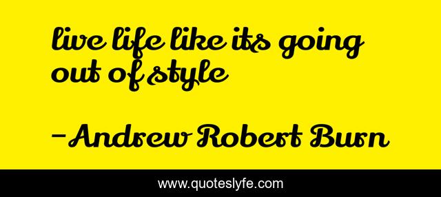 "Andrew Robert Burn Quotes." Quoteslyfe.com, 2025. Fri. 05 Dec. 2025. <https://www.quoteslyfe.com/quote/live-life-like-its-going-out-of-192128>.