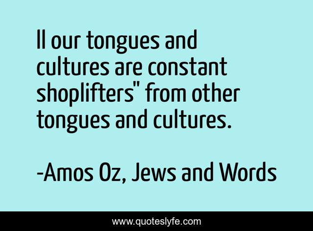 This page presents the quote "ll our tongues and cultures are constant shoplifters" from other tongues and cultures.". Author of this quote is Amos Oz, Jews and Words. This quote is about culure, language, hebrew,.