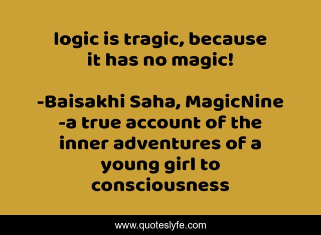 This page presents the quote "logic is tragic, because it has no magic!". Author of this quote is Baisakhi Saha, MagicNine -a true account of the inner adventures of a young girl to consciousness. .