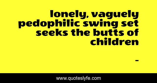 This page presents the quote "lonely, vaguely pedophilic swing set seeks the butts of children". Author of this quote is . .