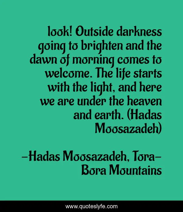 This page presents the quote "look! Outside darkness going to brighten and the dawn of morning comes to welcome. The life starts with the light, and here we are under the heaven and earth. (Hadas Moosazadeh)". Author of this quote is Hadas Moosazadeh, Tora-Bora Mountains. .