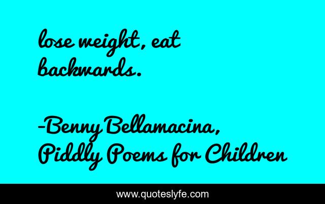 "Benny Bellamacina, Piddly Poems for Children Quotes." Quoteslyfe.com, 2025. Sat. 06 Dec. 2025. <https://www.quoteslyfe.com/quote/lose-weight-eat-backwards-250740>.