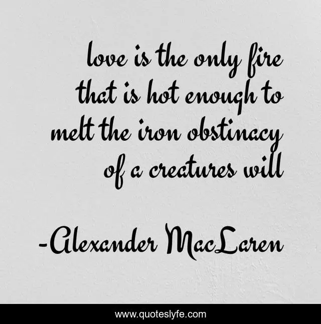 This page presents the quote "love is the only fire that is hot enough to melt the iron obstinacy of a creatures will". Author of this quote is Alexander MacLaren. This quote is about love, affection,.