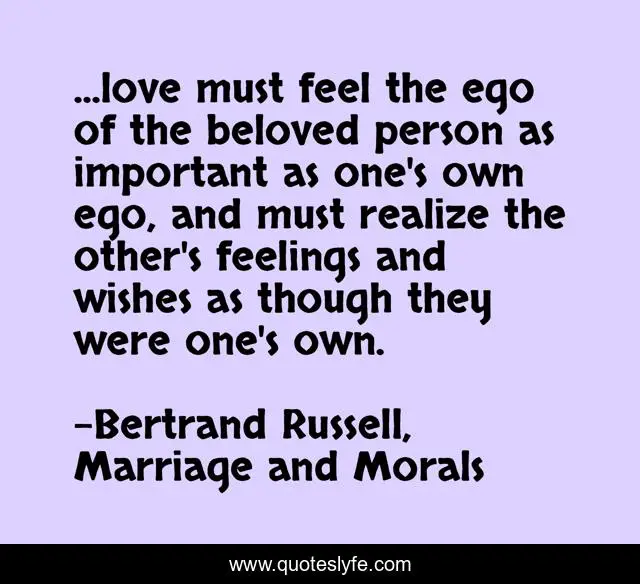"Bertrand Russell, Marriage and Morals Quotes." Quoteslyfe.com, 2025. Sat. 06 Dec. 2025. <https://www.quoteslyfe.com/quote/love-must-feel-the-ego-of-the-145547>.