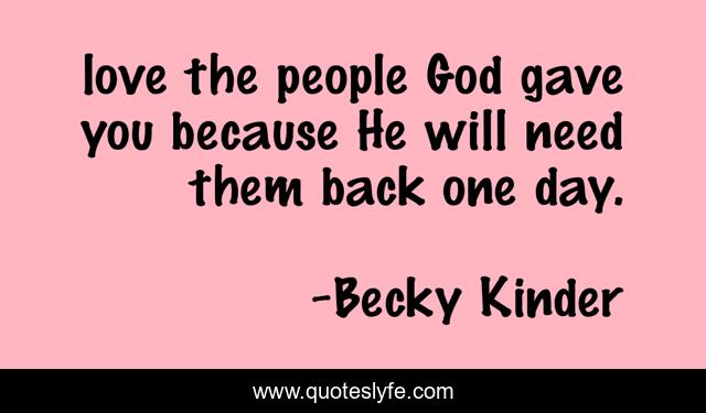 This page presents the quote "love the people God gave you because He will need them back one day.". Author of this quote is Becky Kinder. .