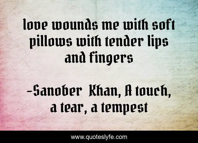 "Sanober Khan, A touch, a tear, a tempest Quotes." Quoteslyfe.com, 2025. Mon. 08 Dec. 2025. <https://www.quoteslyfe.com/quote/love-wounds-me-with-soft-pillows-with-24896>.