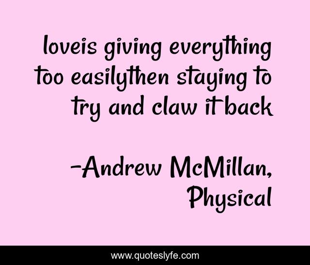 "Andrew McMillan, Physical Quotes." Quoteslyfe.com, 2025. Fri. 05 Dec. 2025. <https://www.quoteslyfe.com/quote/loveis-giving-everything-too-easilythen-staying-to-35830>.