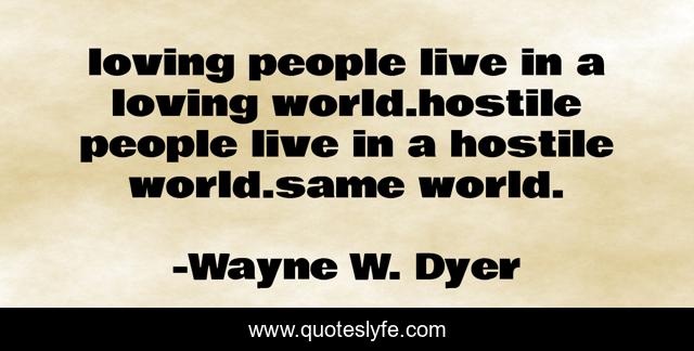 This page presents the quote "loving people live in a loving world.hostile people live in a hostile world.same world.". Author of this quote is Wayne W. Dyer. .