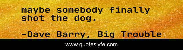 "Dave Barry, Big Trouble Quotes." Quoteslyfe.com, 2025. Sat. 06 Dec. 2025. <https://www.quoteslyfe.com/quote/maybe-somebody-finally-shot-the-dog-41132>.