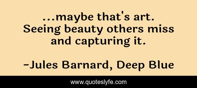 This page presents the quote "...maybe that's art. Seeing beauty others miss and capturing it.". Author of this quote is Jules Barnard, Deep Blue. This quote is about life-and-living, art, beauty,.