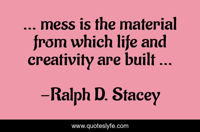 This page presents the quote "… mess is the material from which life and creativity are built …". Author of this quote is Ralph D. Stacey. This quote is about mess, life, creativity,.