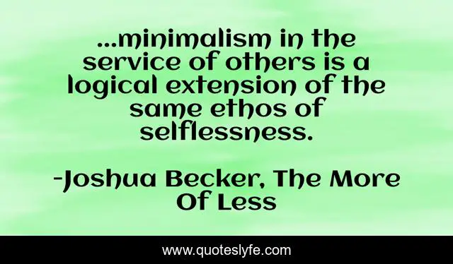 "Joshua Becker, The More Of Less Quotes." Quoteslyfe.com, 2025. Sat. 06 Dec. 2025. <https://www.quoteslyfe.com/quote/minimalism-in-the-service-of-others-is-195885>.