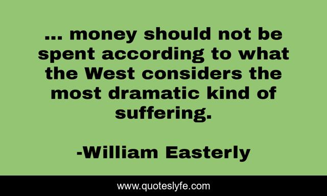 This page presents the quote "... money should not be spent according to what the West considers the most dramatic kind of suffering.". Author of this quote is William Easterly. This quote is about development, aid,.