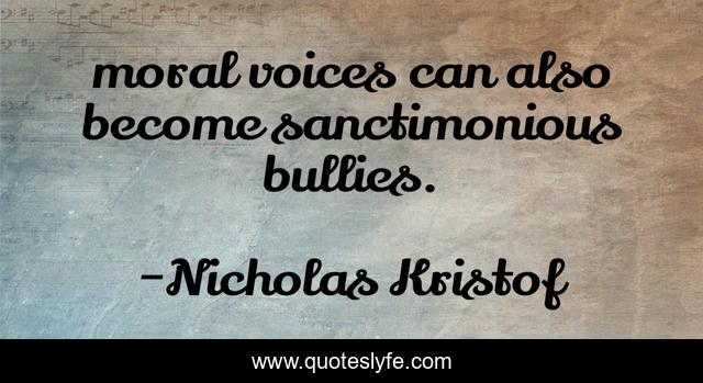 "Nicholas Kristof Quotes." Quoteslyfe.com, 2025. Mon. 08 Dec. 2025. <https://www.quoteslyfe.com/quote/moral-voices-can-also-become-sanctimonious-bullies-186387>.